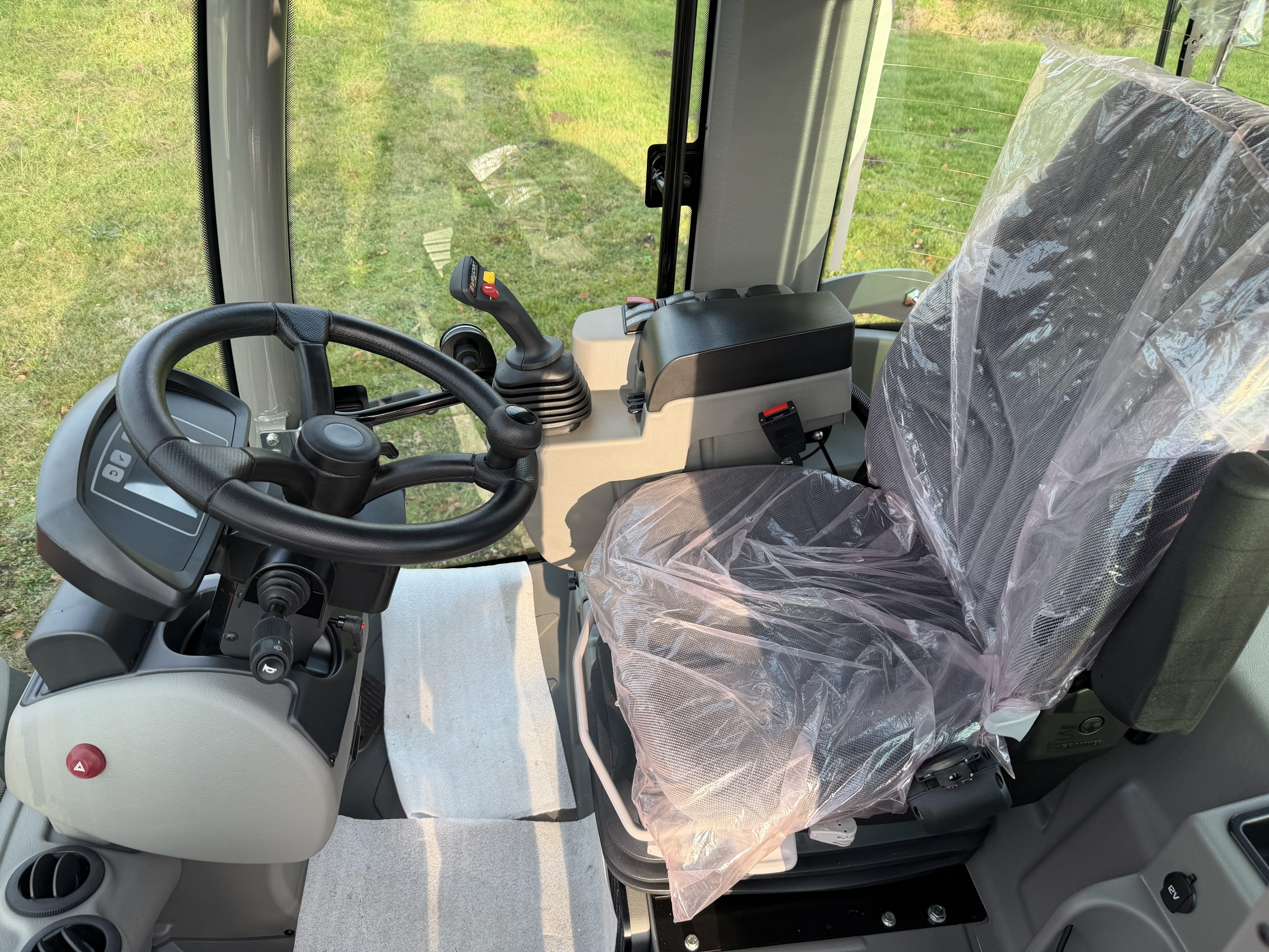 Förarsäte: Förarhytt med värme. Joystick. Rattstång justerbar i höjdled. Skjutfönster höger sida. Radio.